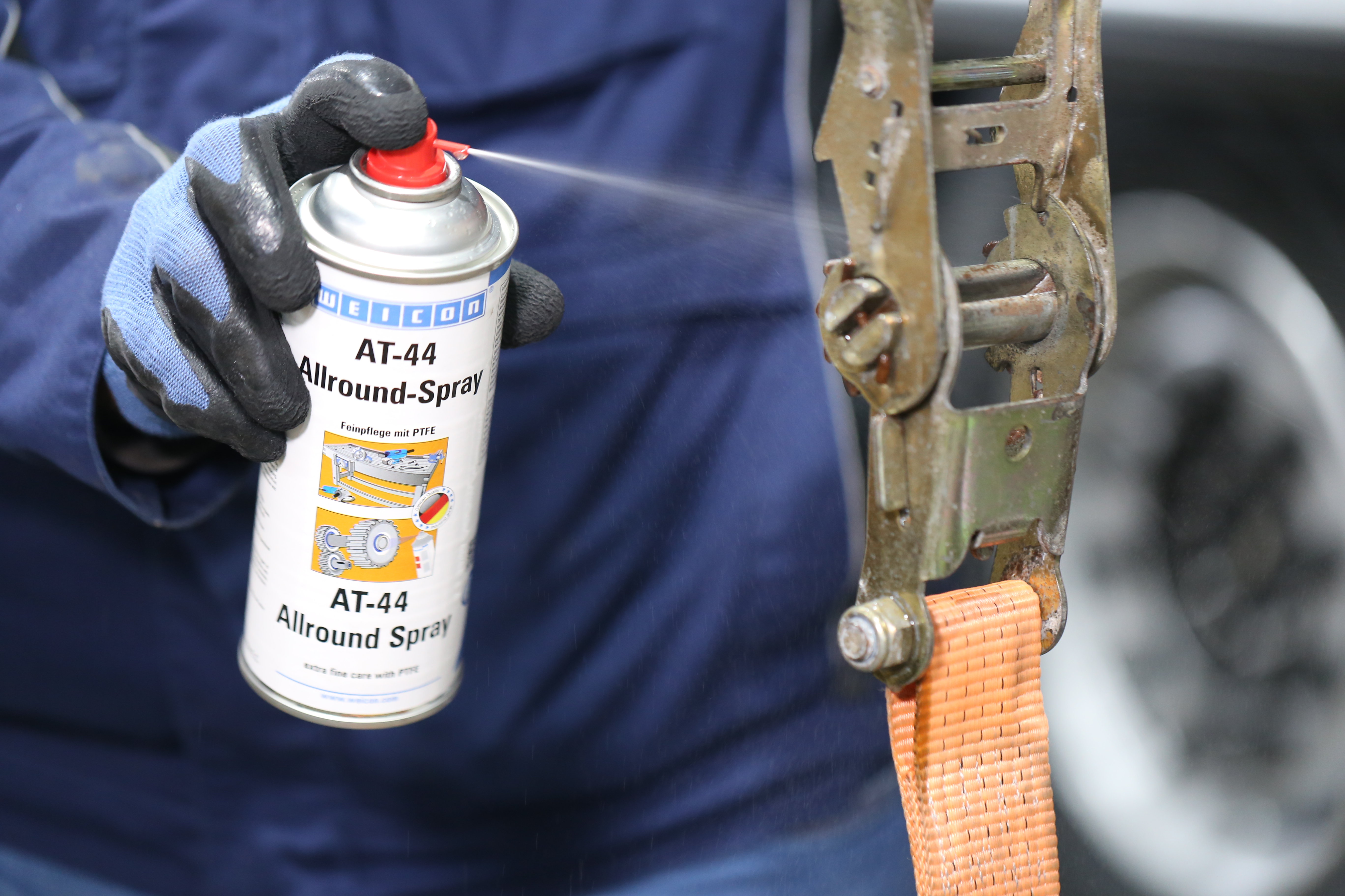WEICON AT-44 is a silicone-free all-round spray with PTFE. Thanks to its special formula and very low friction coefficient, WEICON AT-44 combines corrosion protection, cleaning, water displacement, lubrication and conservation in a single product. The high-performance lubrication oil loosens seized threads, bolts, fittings and valves, dispels moisture from electrical cables, prevents tracking currents and makes it easier to start wet motors. It eliminates squeaky and creaky noises on hinges, guides, bearings and all types of joints and couplings. It cleans soiled surfaces and leaves a razor-thin film which does not smear or stick and does not attract dust. It protects and maintains all types of tools, machines, and electrical and mechanical precision devices.