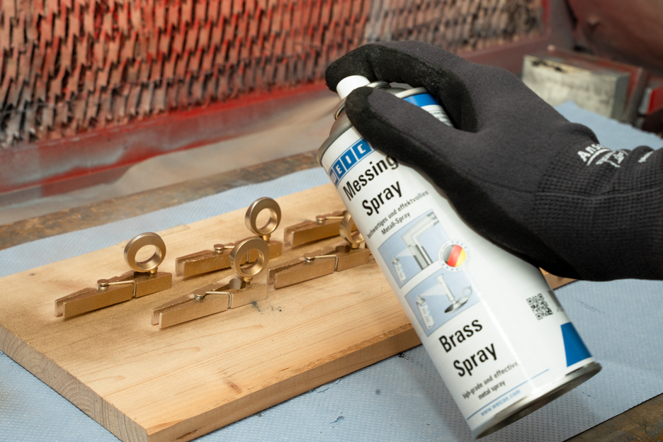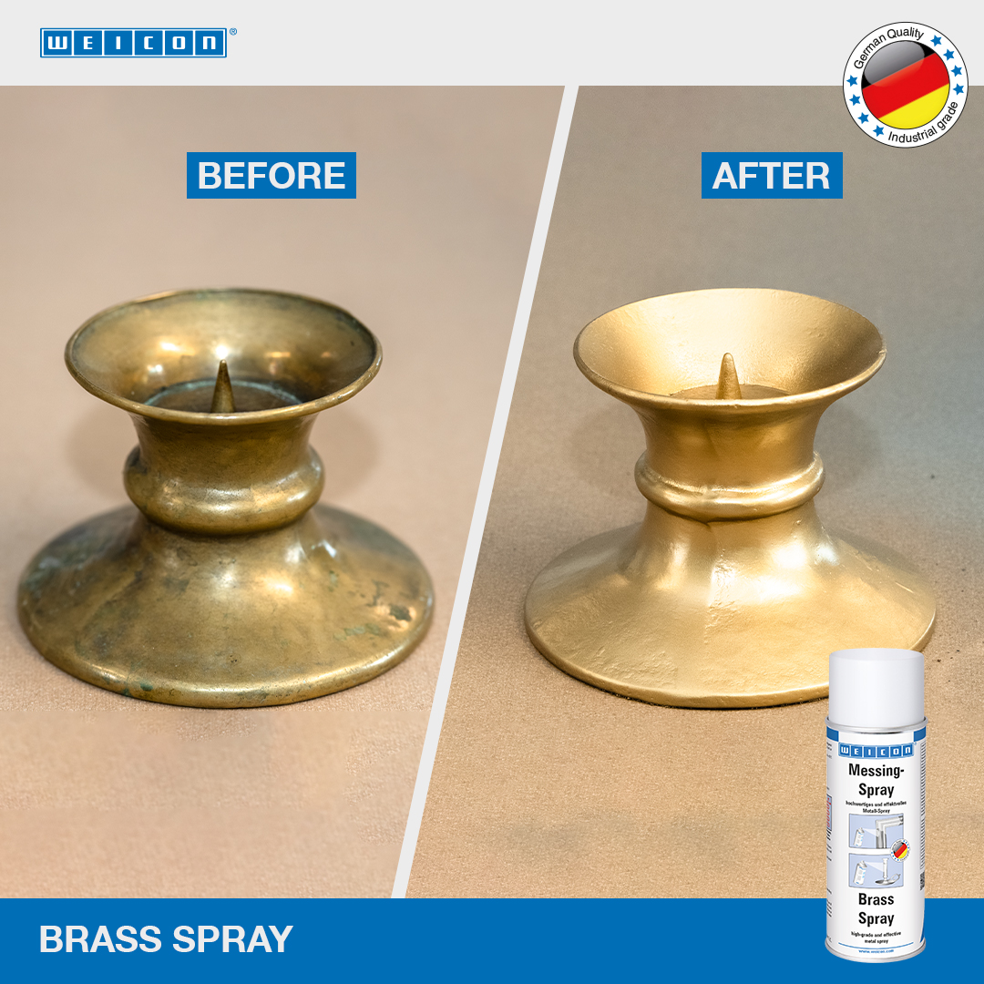 WEICON Brass Spray is a metallic coating with a high brass content and a typical brass colour shade. For the protection and optical refinement of various materials. WEICON Brass Spray can be used in restoration works, for decorative purposes, in arts and crafts, hobby and do-it-yourself applications. It is suited for the sustainable repair of yellow chrome-plated parts which have been damaged by drilling, welding or milling.