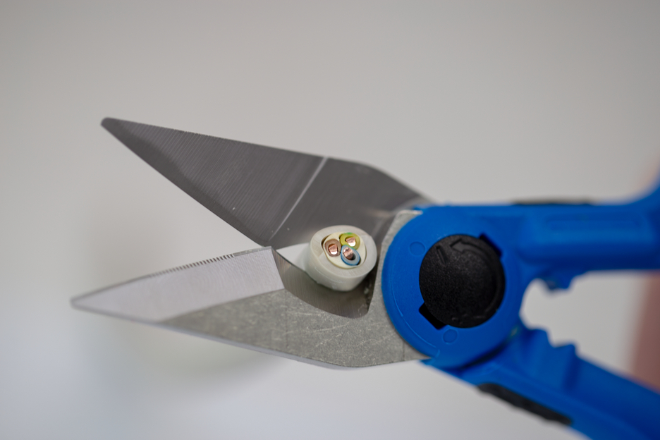 The scissors can be used for cutting and stripping Cu/Al wires and crimping wire end ferrules from 0.5 - 4 mm². The stainless blades made of high-quality INOX steel are hardened to 55 HRC and therefore very wear-resistant. The fine micro serration of the blades enables flush and slip-free cutting, resulting in a very precise cut. The non-slip 2-component handles made of impact-resistant fibreglass-reinforced plastic ensure safe working.