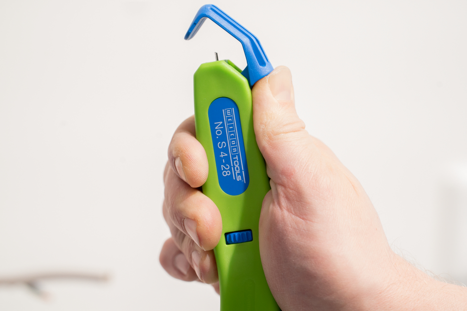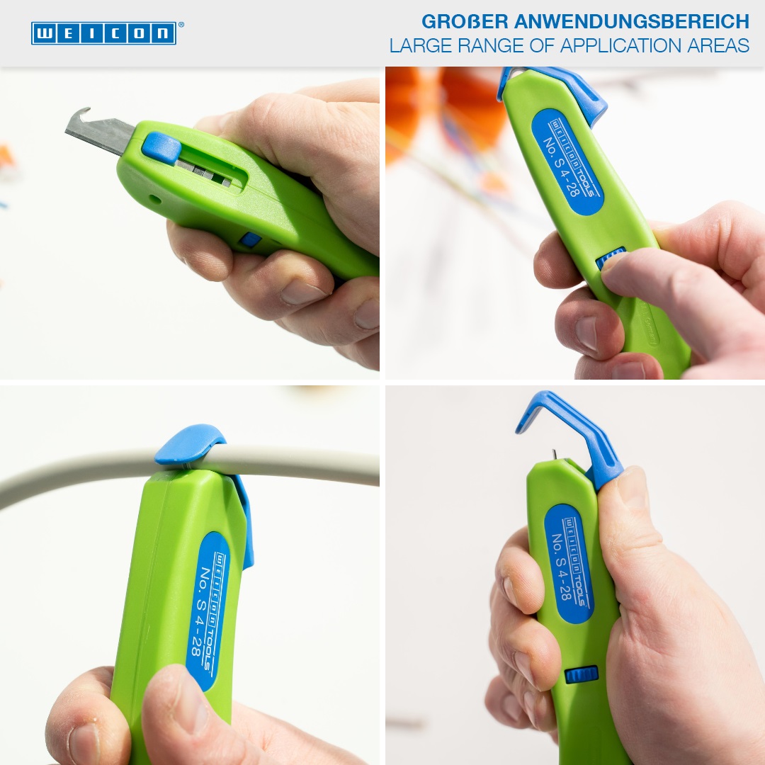 Sustainable stripping tool I with retractable hook blade I working range 4 - 28 mm Ø