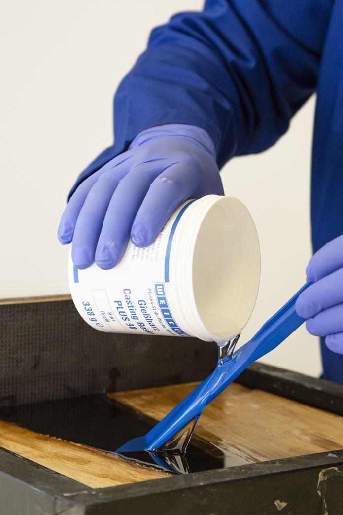 The epoxy resin system Casting Resin Plus 90 is a casting compound which cures crystal clear. Its special formulation allows high layer thicknesses up to 90 mm. The compound can also be used to coat sensitive surfaces and protects against damages. The casting resin has a low viscosity, high mechanical stability, is impact-resistant, has a high moisture resistance and a good UV resistance. It can be processed very well manually and mechanically - whether by grinding, filing or drilling. Casting Resin Plus 90 is particularly suitable for applications with high optical requirements. Whether in the production of design objects, furniture construction, trade fair construction, yacht and boat building, wood processing, arts and crafts, or gardening and landscaping - the casting resin is suitable for a wide range of applications.
