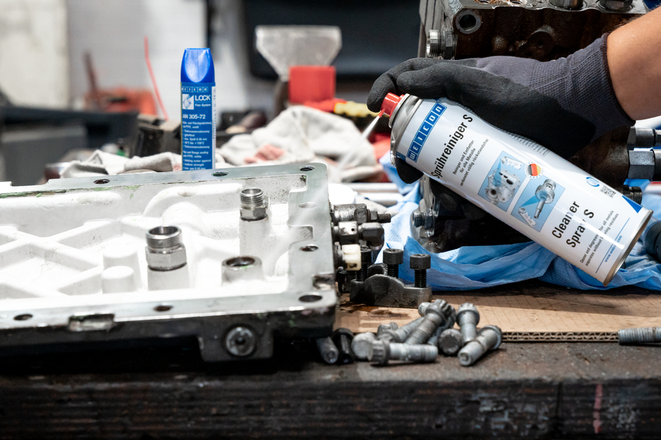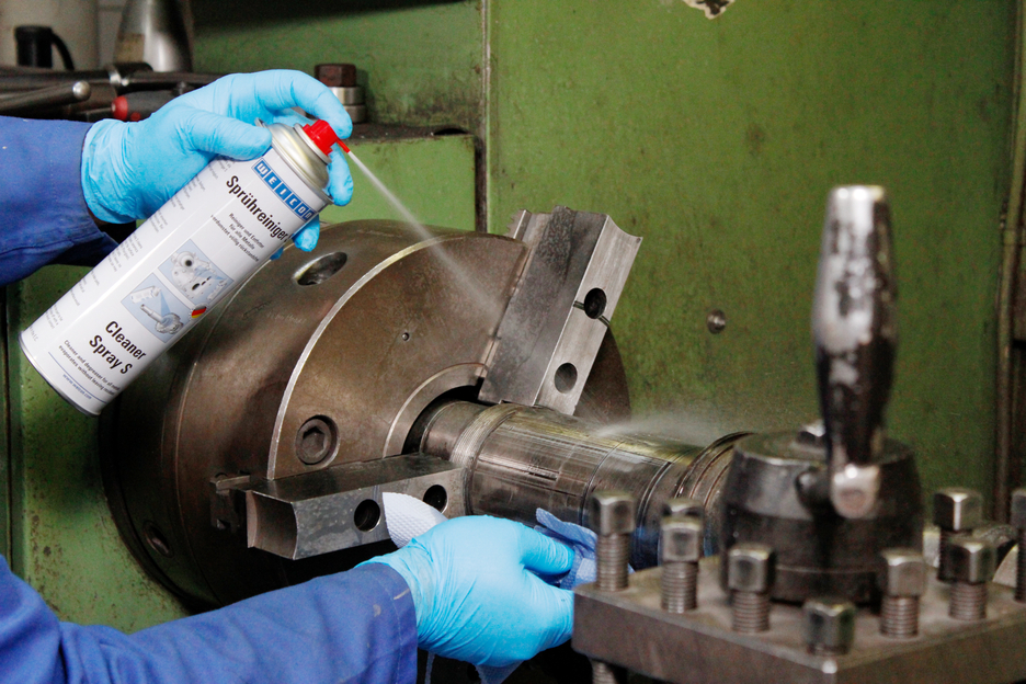 WEICON Cleaner Spray S removes oily and greasy soiling from all metals as well as from ceramics, glass and most plastics. It can, however, attack the surface of thermoplastics such as PVC, Plexiglas, polystyrene and single layers of paint. WEICON Cleaner S evaporates quickly and, in contrast to conventional thinners, without leaving residues. It can be used for cleaning and degreasing before priming and painting, for cleaning machine parts, or before other WEICON products are applied to surfaces where a greasy underground would impair their effect.