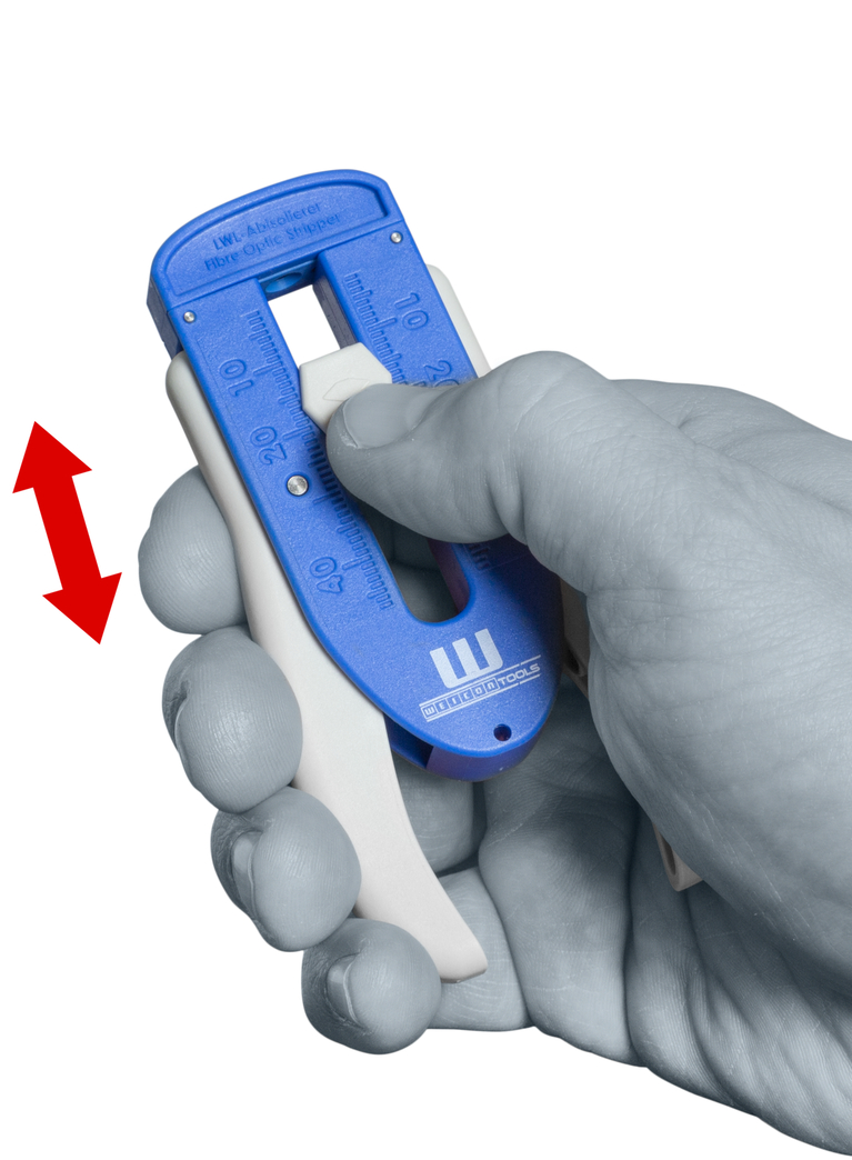 This cable stripper was designed specifically for the fast and easy removal of the primary coating on thin fibre optic cables with a diameter as small as 0.125 mm. The funnel-shaped opening on the tool head ensures the easy and accurate insertion of thin fibre optic cables. The high-precision blades are specially designed so that no adjustment of the cutting depth is necessary. With the adjustable scaled length stop for the working range from 5 to 45 millimetres, the desired stripping length can be set quickly and accurately. Two durable, precisely adjusted torsion springs, which push symmetrically on the pair of blades with a defined force, ensure comfortable working. The accurate spring pressure guarantees the special contour of the blades to cut the thin primary coating cleanly and precisely. This ensures highly precise and non-damaging stripping of fibre optic cables as thin as 0.125 mm.