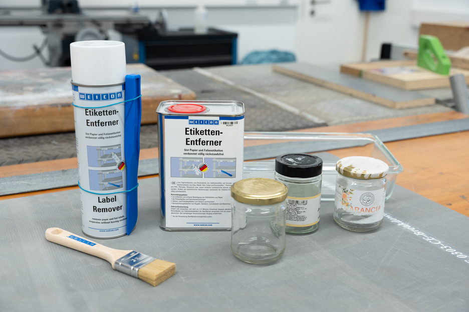 WEICON Label Remover quickly and easily removes paper labels and residues of acrylate and caoutchouc-based pressure-sensitive adhesives. Label Remover is suitable for many surfaces such as glass, metal, wood, foil and plastic. It easily and safely removes adhesive labels, price tags (e.g. incorrect labels), address and product stickers, identification labels, and label residues. It also removes adhesive residues from foil labels such as vignettes on car windshields.