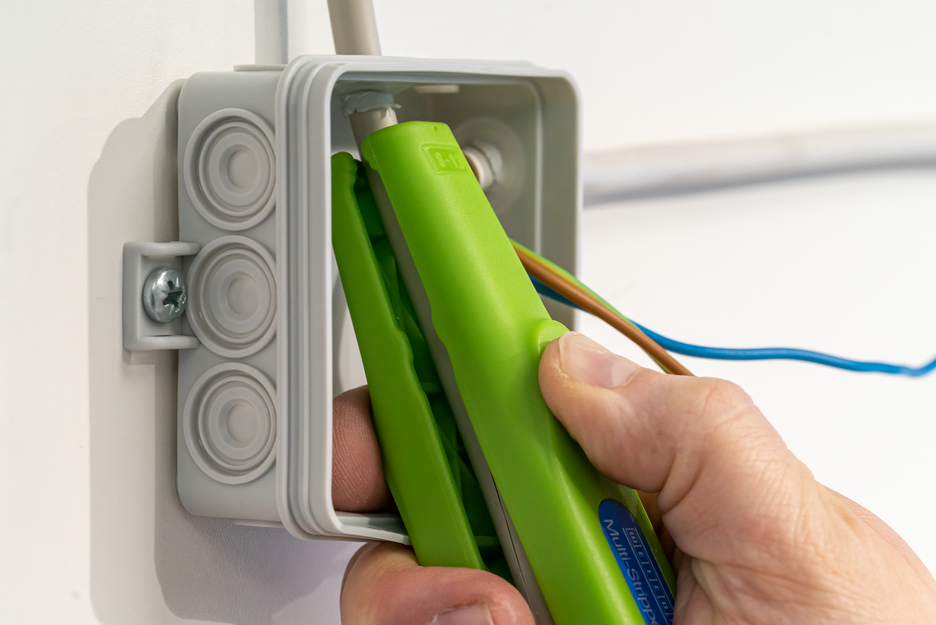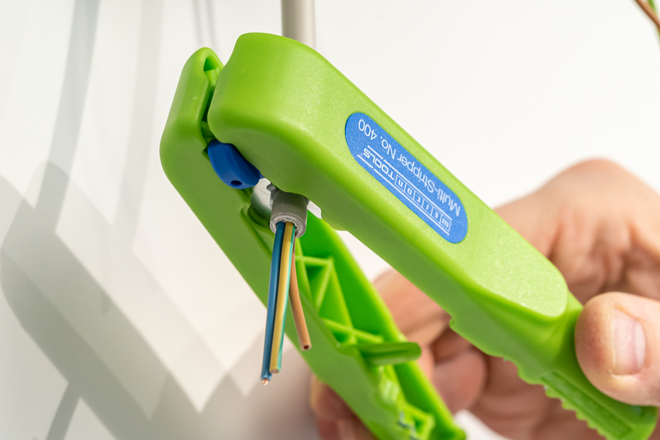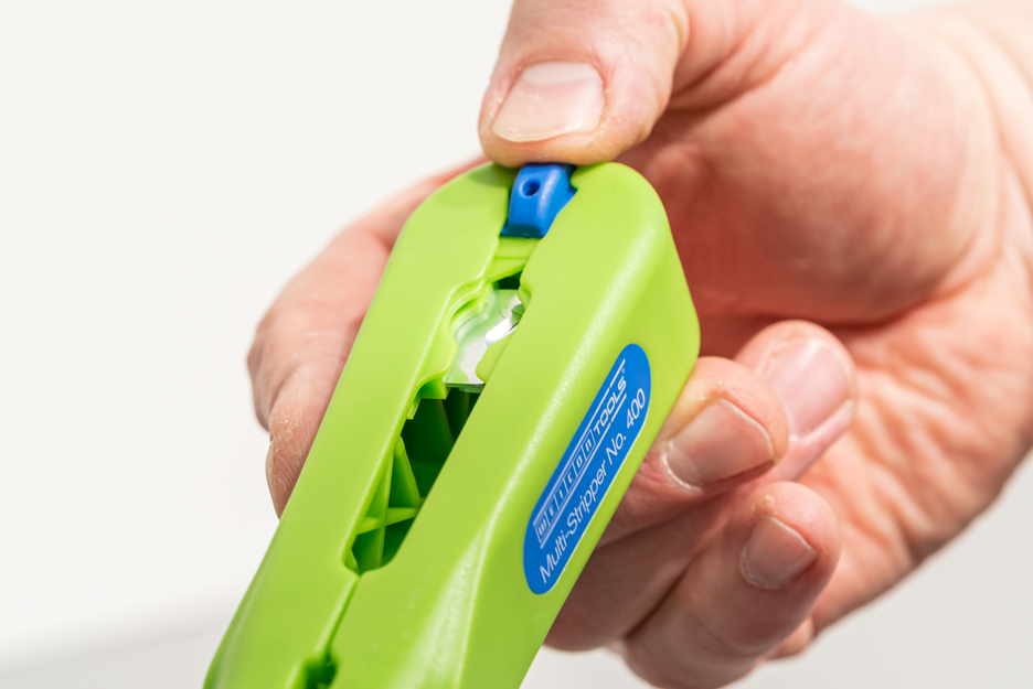 With the Green Line, a very special tool range has been developed. The tools are made of up to 97 % renewable raw materials, which are recyclable and have an excellent life cycle assessment. WEICON Multi-Stripper No. 400 Green Line, a universal stripping tool for the functions: circular cutting - longitudinal cutting - stripping - cutting. With this tool, cables can be stripped easily even in places that are difficult to access, e.g. in ceilings and walls, in junction and distribution boxes, switch cabinets. The contour blade can be used to strip the conductor cross-sections 0.5 mm², 0.75 mm², 1.5 mm², 2.5 mm², 4.0 mm² and 6.0 mm². The multi-stripper impresses with its handy design and wide range of uses.