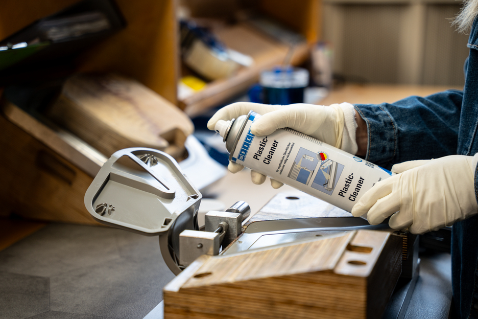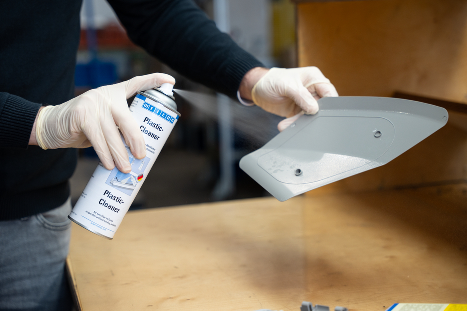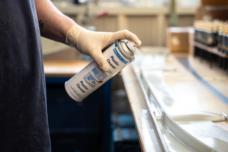 WEICON Plastic Cleaner cleans, degreases and evaporates without leaving residues. It can be used to clean and degrease sensitive surfaces such as plastics*, rubber materials or powder-coated metal parts. WEICON Plastic Cleaner can be used, for example, on window frames, roller blinds, plastic profiles, seals or lacquered flanges in many industrial applications. * Check surface compatibility prior to use.
