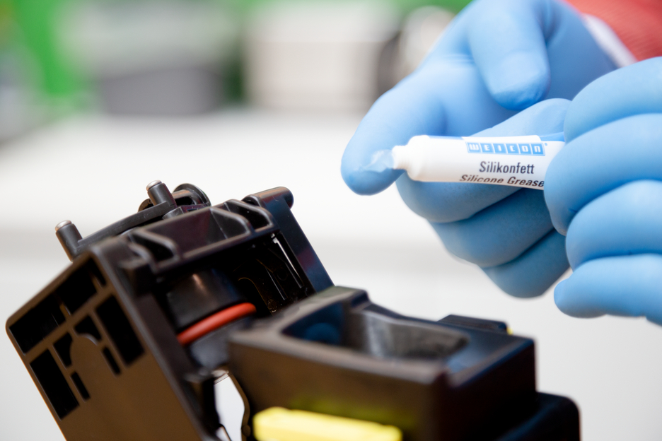 WEICON Silicone Grease is highly adhesive, transparent and very compatible with plastics. Owing to its NSF H1 registration, it is suitable as a lubricant for valves, fittings and seals in sensitive areas. The grease complies with the Guideline for Hygienic Assessment of Organic Materials in Contact with Drinking Water (KTW guideline) by the German Federal Environment Agency. It can be used in the food and beverage industry, in sanitary and heating construction, in the pharmaceutical industry as well as in sealing technology. WEICON Silicone Grease is safety-tested by the German Federal Institute for Materials Research and Testing (BAM) – cf. leaflet 034-1 “List of non-metallic materials for use in oxygen” (DGUV information 213-075) of BG RCI. The grease is especially material-friendly, odourless and tasteless and has a temperature resistance of -50 °C to +200 °C. WEICON Silicone Grease is suitable for the lubrication of plastic parts, rubber parts and seals, valves, fittings and gaskets, for devices and systems and as an assembly aid for O-rings.