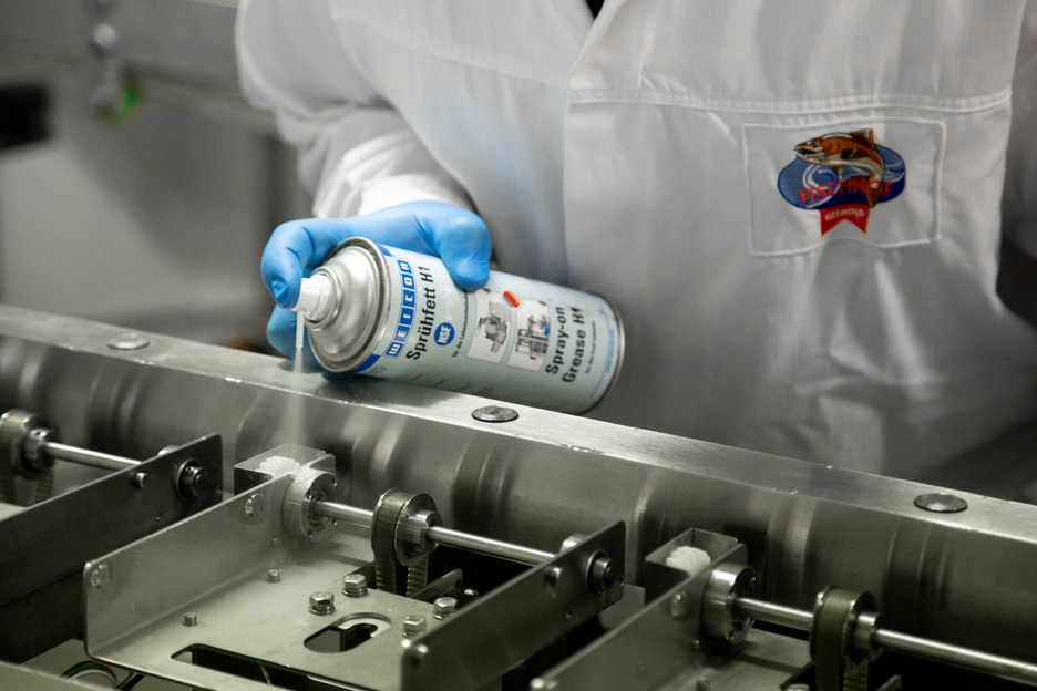 WEICON Spray-on Grease H1 is an odourless and tasteless grease that has been specially formulated to meet the requirements of the food, cosmetics and pharmaceuticals industry. It is high-temperature-resistant and has an NSF registration. Spray-on Grease H1 is particularly suited for servicing and maintenance in breweries and in the beverage industry, in industrial slaughterhouses, canneries, coffee-roasting establishments, industrial kitchens, swimming pools, hotels, hospitals and wherever direct contact with food cannot be avoided.