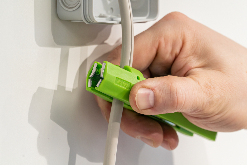 Sustainable stripping tool I universal tool for cable stripping I Flush stripping on walls and ceilings I Round and longitudinal cutting I Working range 0.5 - 16 mm² / 4 - 13 mm Ø I For many different cable types in house installations