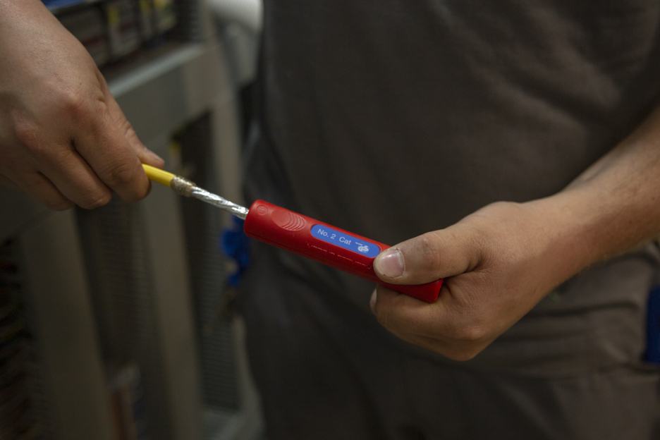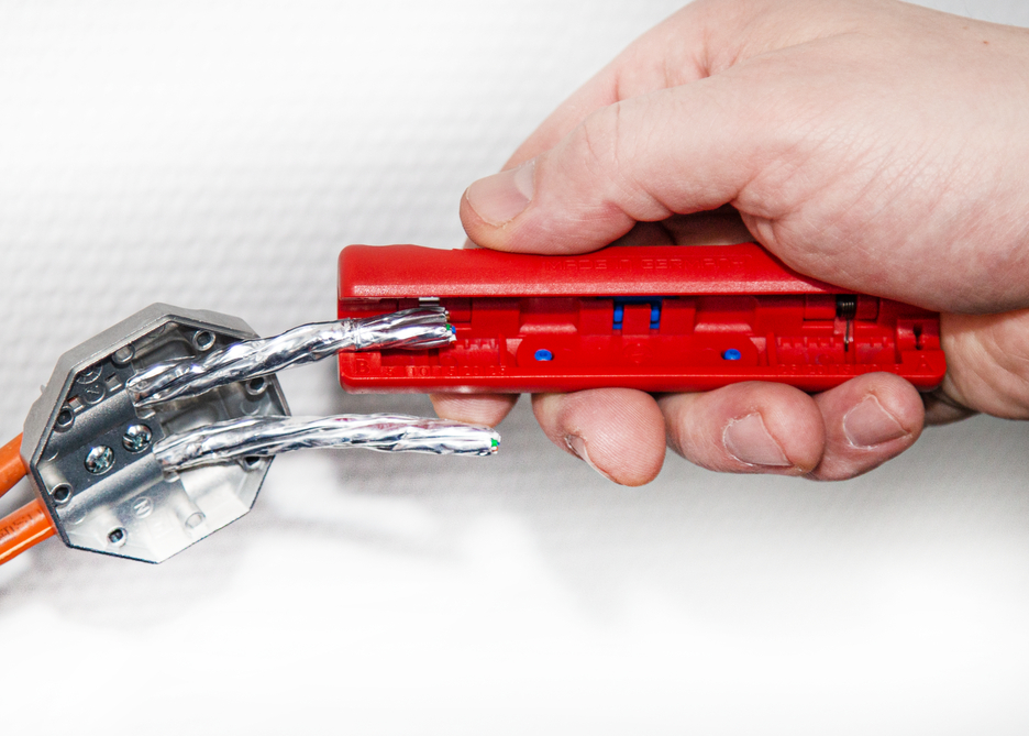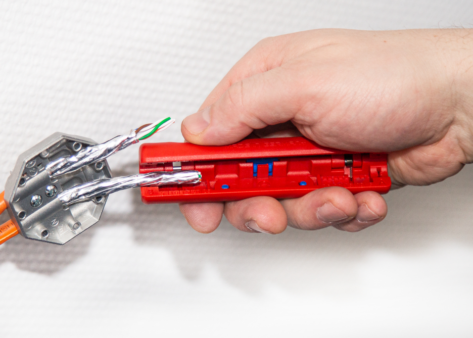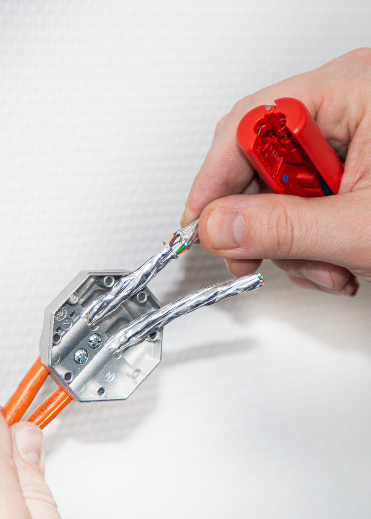 for insulated PVC data cables (e.g. Cat5, Cat6, Cat7, twisted pair cable) with a diameter of 4.5 - 10 mm adjustment of the cutting depth is not required the precise adjustment of the blade removes the outer jacket accurately. With the second blade, the foil shield is slit open carefully and can then be easily removed.