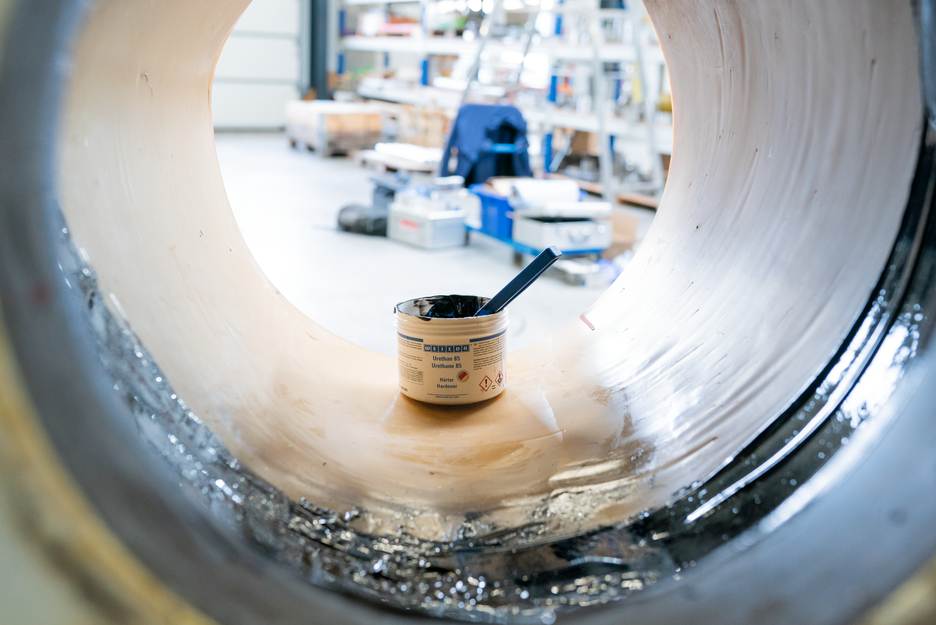 WEICON Urethane 85 is a 2-C polyurethane putty with excellent mechanical strength for the quick repair, touch-up and coating of rubber and metal pieces, which are exposed to shocks, abrasion, vibration or motion. It shows high elasticity as well as high wear resistance. Urethane 85 is suitable for many applications, such as the repair of rubber components and conveyor belts, the repair and touch-up of rubber coatings, as flexible wear protection for pump housings and impellers as well as for the quick repair of worn-out seals and rubber rollers.
