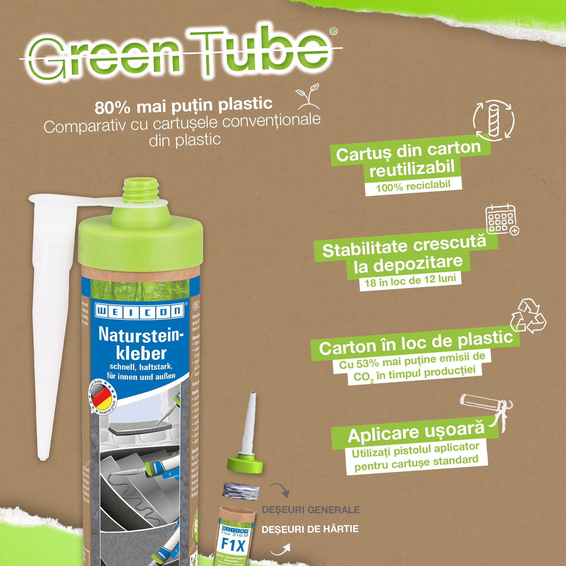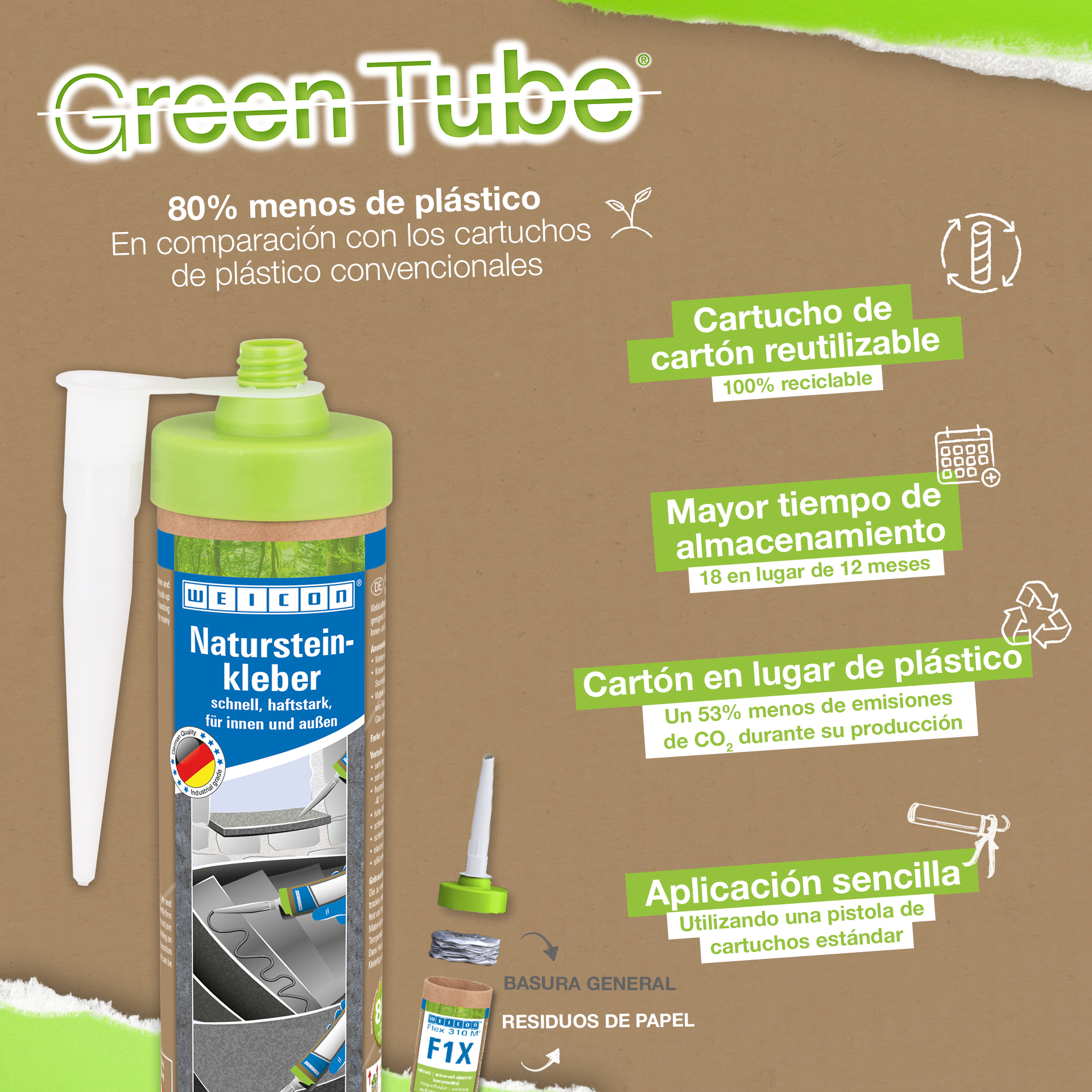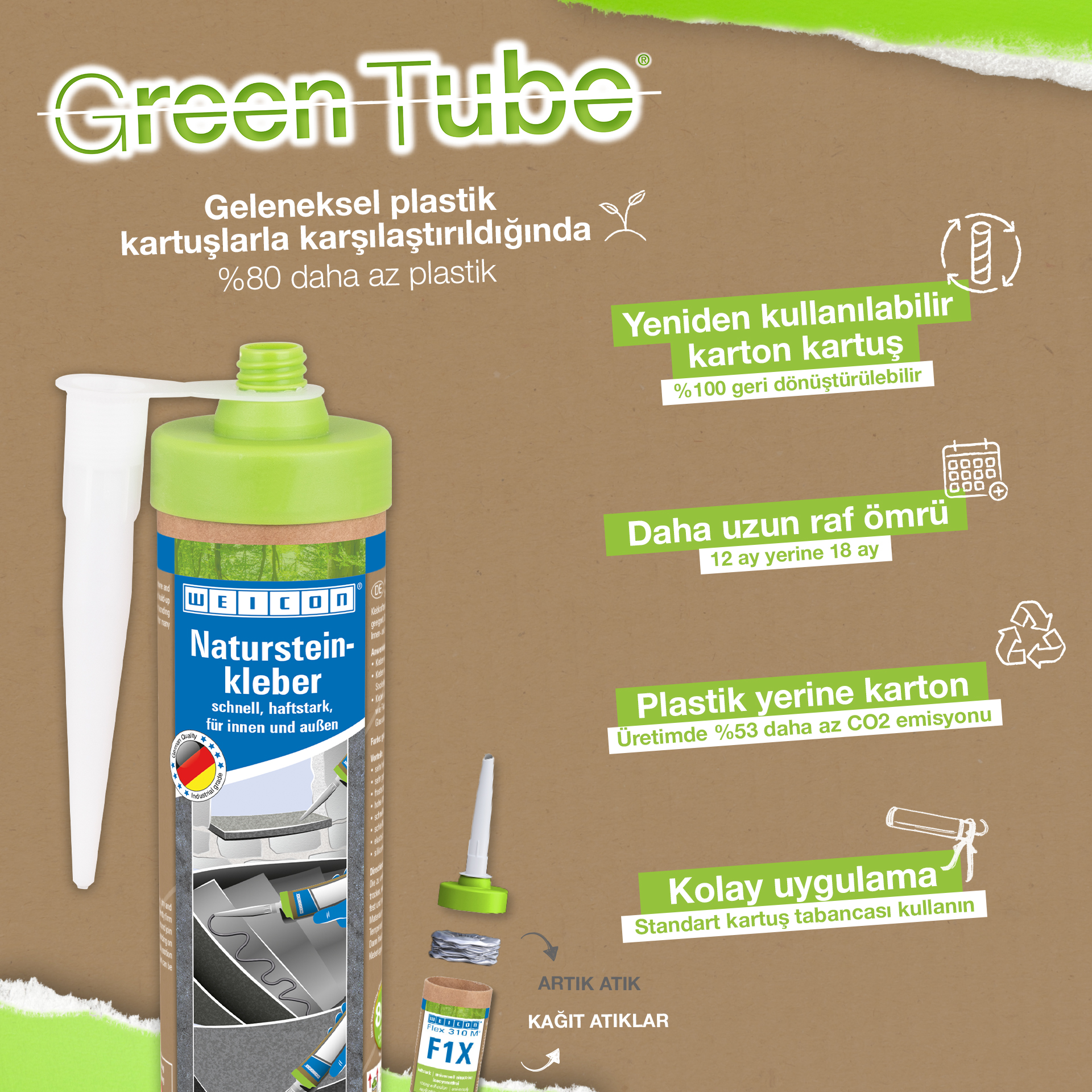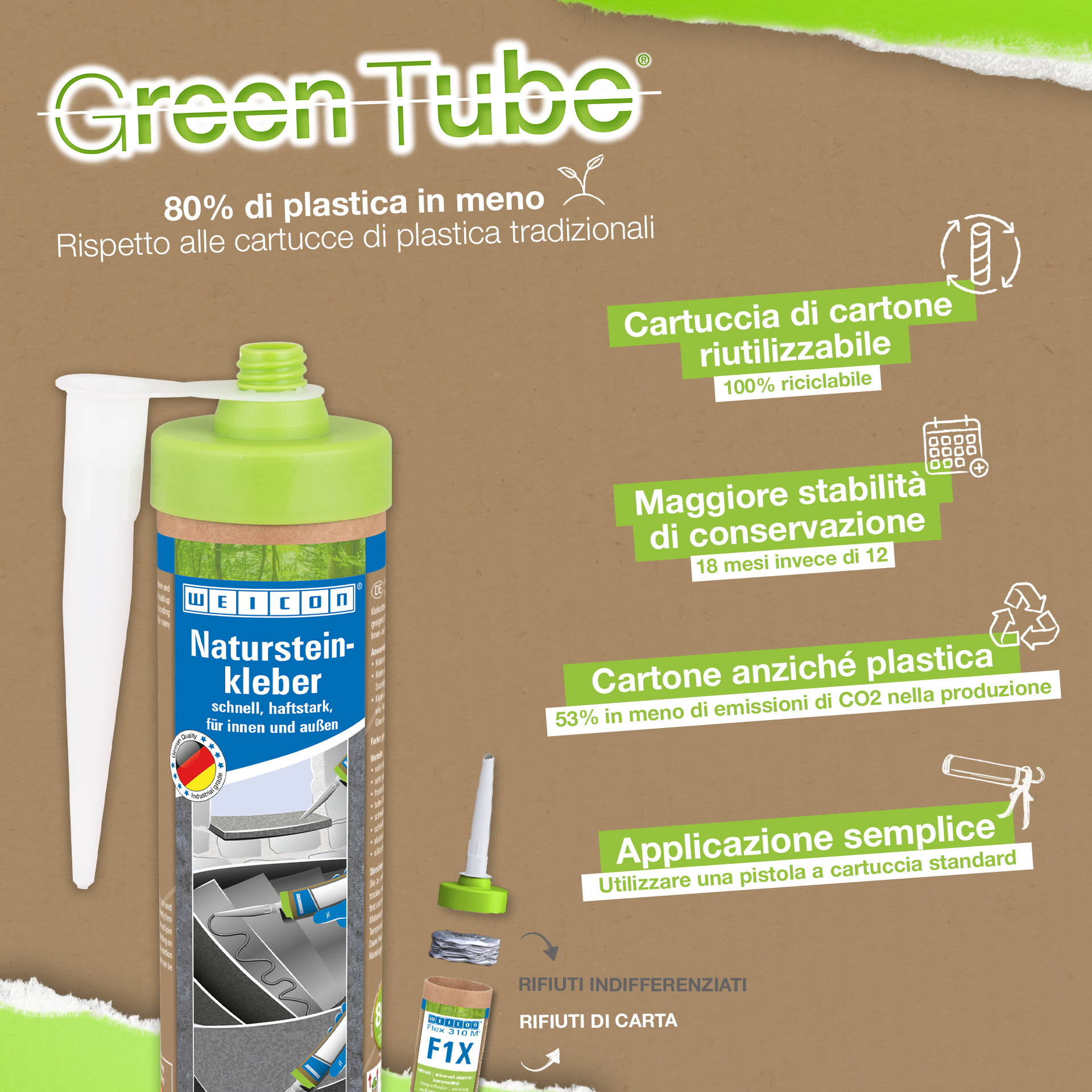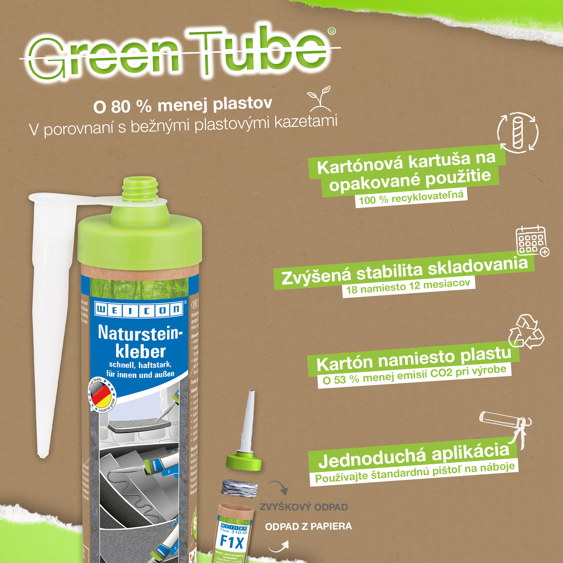 WEICON Natural Stone Adhesive is a strong adhesive for fixing natural stone, stone and ceramics. Thanks to its very high initial adhesion and rapid build-up of adhesive strength, bonding is even possible on vertical surfaces such as walls. The stone adhesive is suitable for many indoor and outdoor applications. It is frost-proof, has a high temperature resistance of -40°C to +90°C as well as high weather and UV resistance. The Natural Stone Adhesive hardens quickly and has a very high final strength. After curing, the adhesive can be sanded and remains elastic to compensate for movements. The stone adhesive is silicone-free, isocyanate-free, halogen-free and solvent-free. It can be used in a wide variety of applications, e.g. for bonding window sills, tiles, skirting boards, decorative mouldings or stair treads. WEICON Natural Stone Adhesive adheres very well to a wide variety of materials, such as wood, wood-based materials, plastics, metals, glass and mineral substrates. It is available in grey and white.