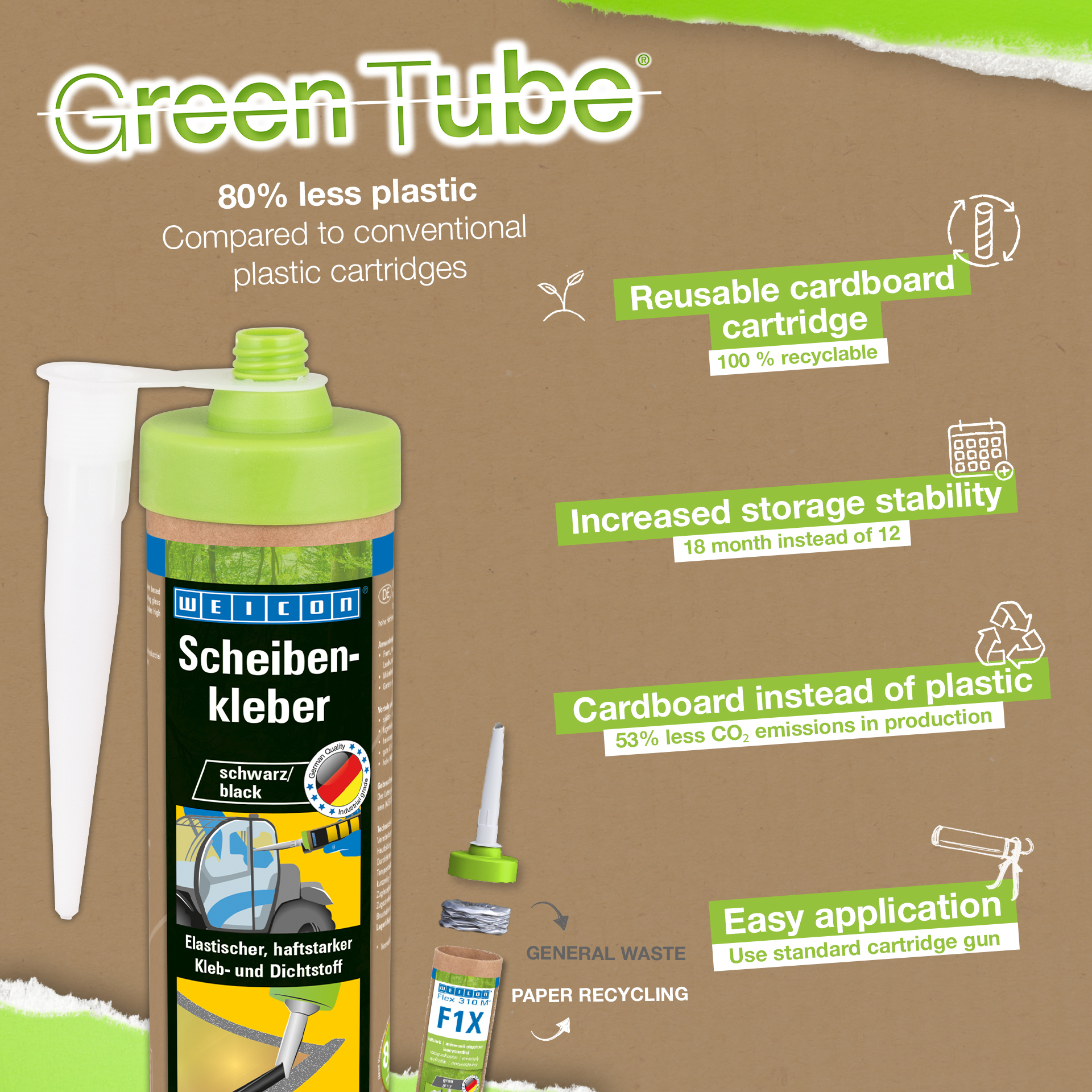 WEICON Windscreen Adhesive is an elastic, pasty, strong 1-C adhesive and sealant based on MS-Polymer, which is specially designed to mount glass and window panes. For example, the adhesive bonds windscreens, rear windows and side windows in powered industrial trucks, agricultural machines, and construction machines. It is also suitable for furniture manufacture or for installations in gardening and landscaping. Windscreen Adhesive provides high adhesive strength on many materials and cures with air humidity. The adhesive shows excellent ageing resistance and good UV stability.. It is joint-filling, odourless, and free of silicones, isocyanates, halogens, and solvents.