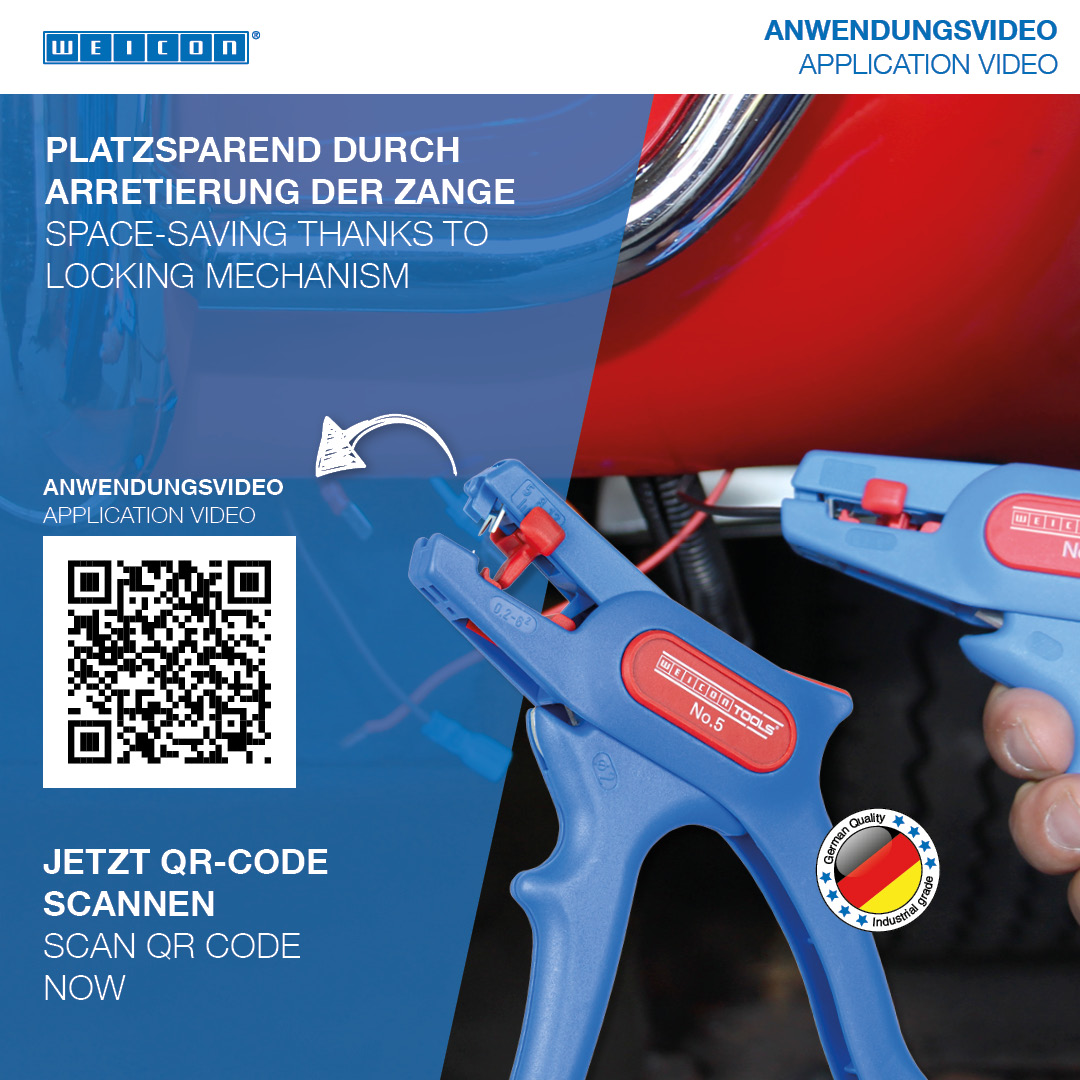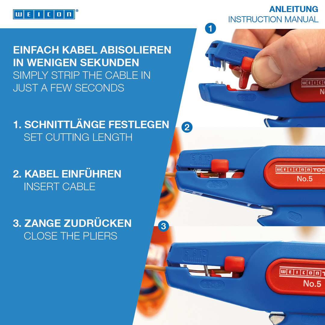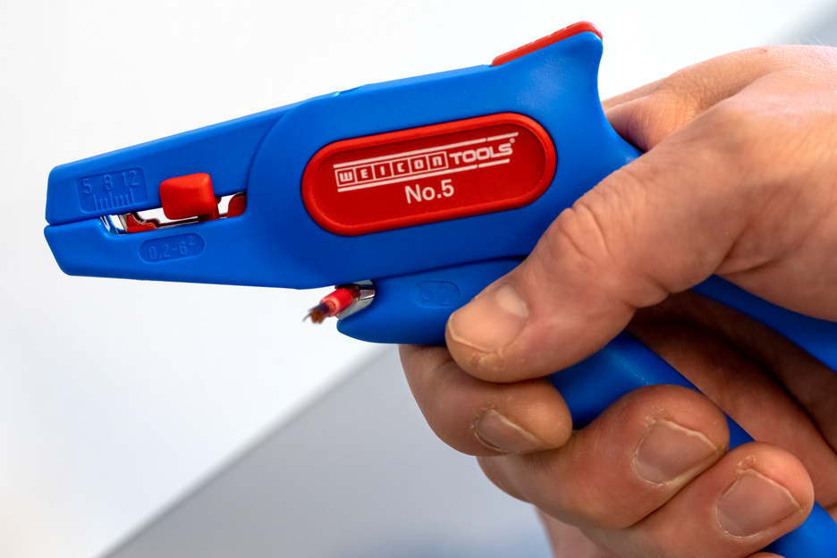 automatic wire stripper for all common stranded and solid conductors (0.2 – 6.0 mm²) I very easy to operate I precise working thanks to adjustable length stop (5 - 12 mm)